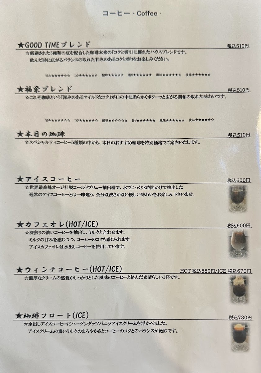 Introducing the Menu at GOOD TIME 福栄珈琲店